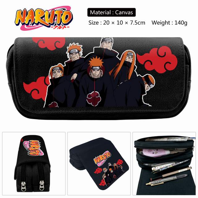 火影忍者 多人款 动漫双层多功能大容量帆布学生笔袋文具盒钱包 20X10X7.5CM 140G