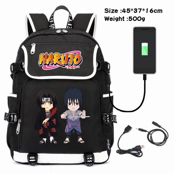 火影忍者-149 动漫600D防水帆布双肩包USB充电数据线背包