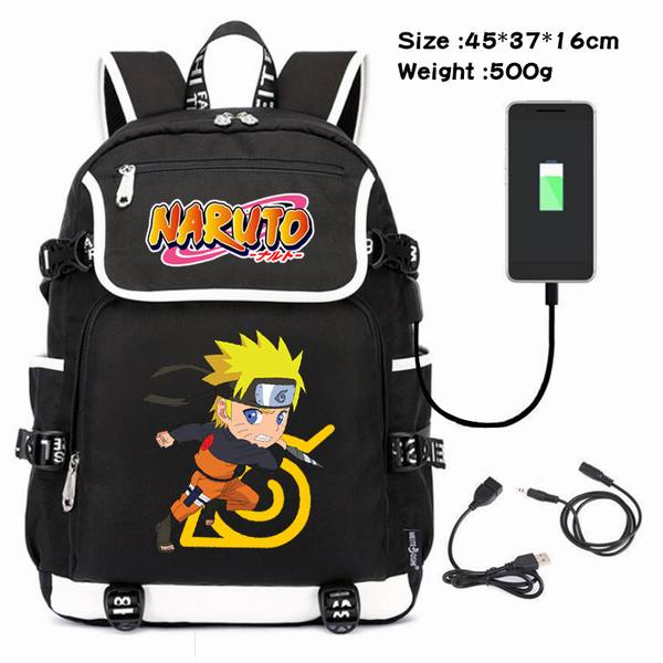 火影忍者-150 动漫600D防水帆布双肩包USB充电数据线背包