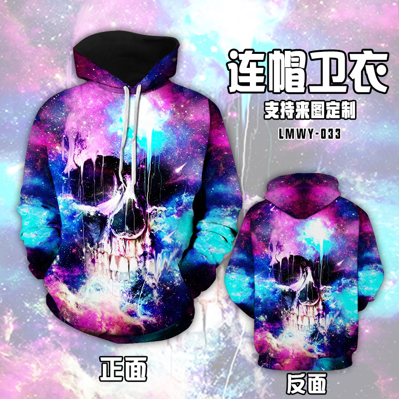 LMWY034个性骷髅全彩热转印健康布连帽套头卫衣提前三天订货S M L XL XXL XXXL
