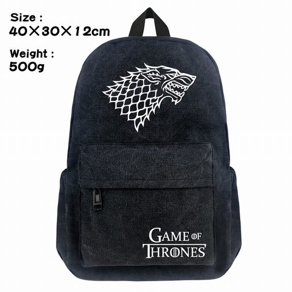 权利的游戏狼头标志帆布丝印双肩背包