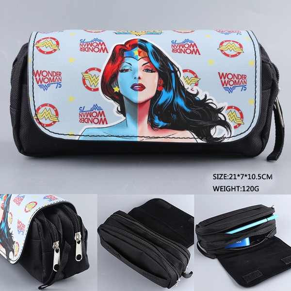 神奇女侠PU尼龙多功能双层拉链翻盖钱包笔袋A款