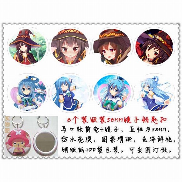 为美好的世界献上祝福 8款一套圆形镜子钥匙扣58mm