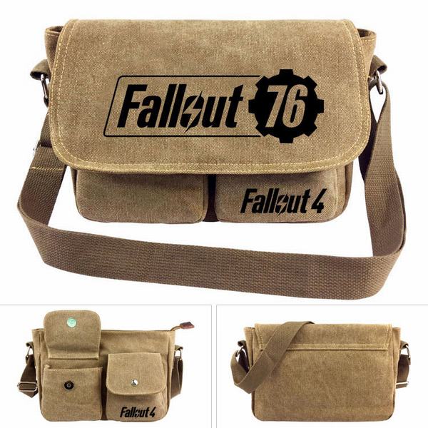 辐射小子-02卡其色帆布斜肩挎包 28X7X20CM