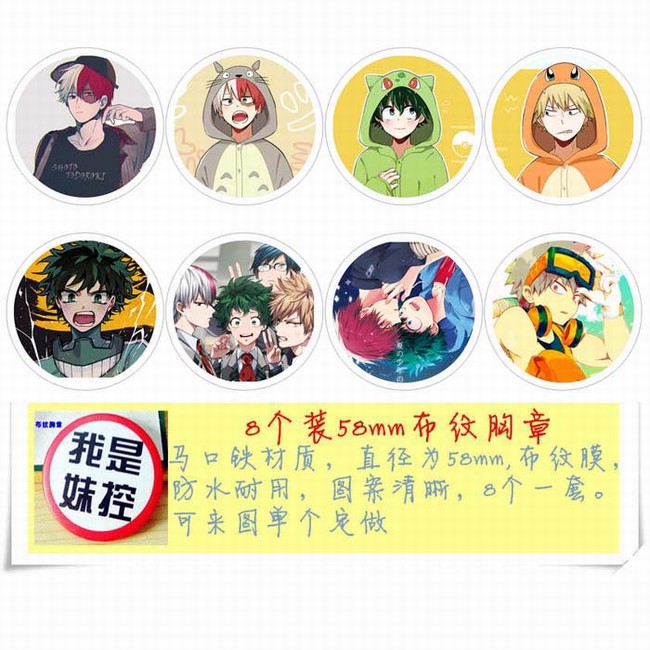 我的英雄学院 8款一套圆形布纹胸针58MM