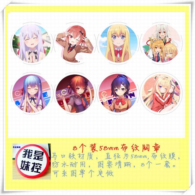 欢迎来到实力至少主义的教室B款 8款一套圆形布纹胸针58MM