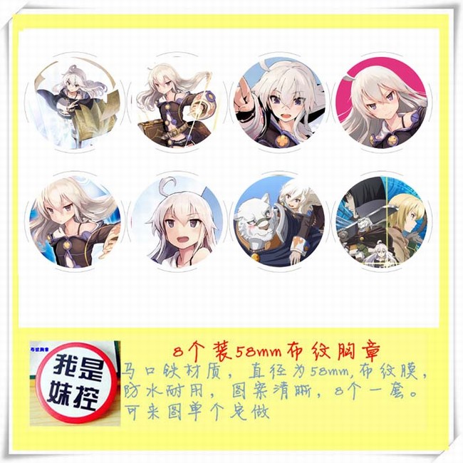 刀剑神域 8款一套圆形布纹胸针58MM