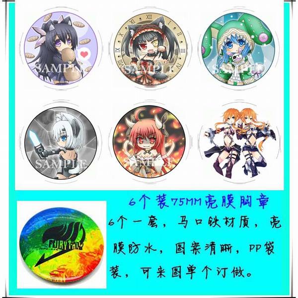 妖精的尾巴 动漫马口铁亮膜徽章胸章圆形布纹胸针 6款一套 75MM