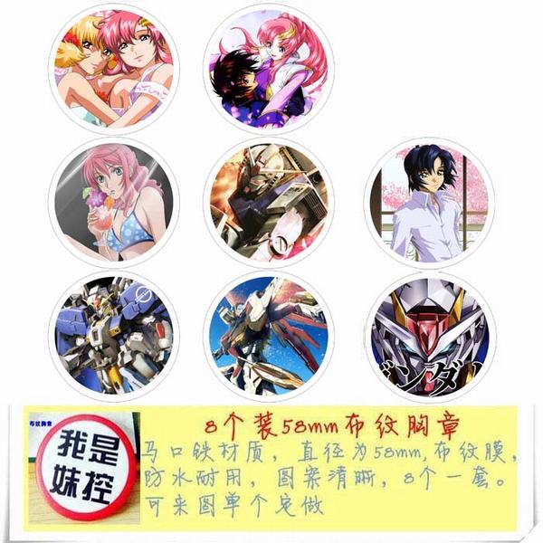高达 动漫马口铁徽章胸章圆形布纹胸针 8款一套 58MM