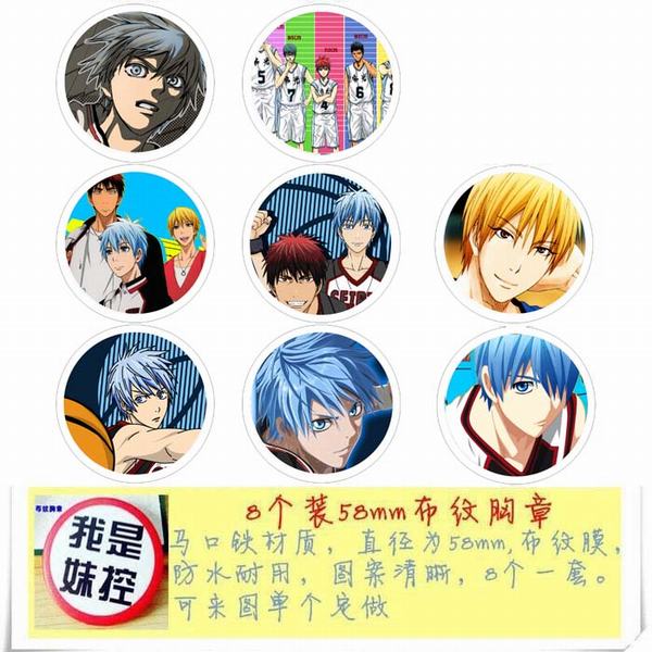 黑子的篮球 动漫马口铁徽章胸章圆形布纹胸针 8款一套 58MM