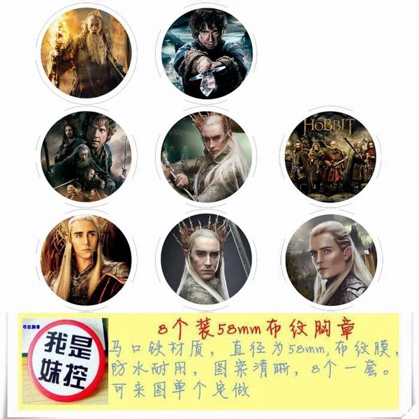 霍比特 动漫马口铁徽章胸章圆形布纹胸针 8款一套 58MM