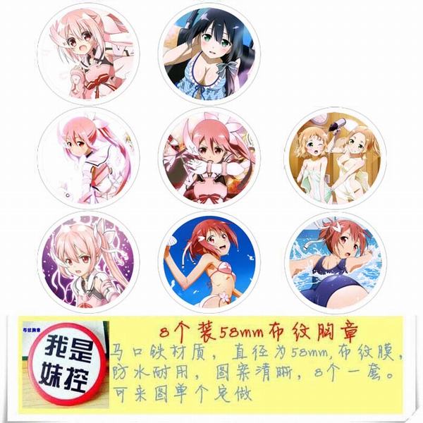 魄罗 动漫马口铁徽章胸章圆形布纹胸针 8款一套 58MM