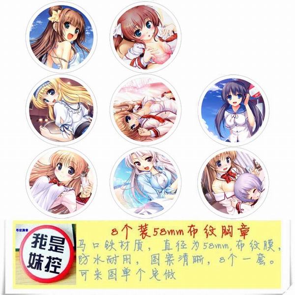 荣誉 动漫马口铁徽章胸章圆形布纹胸针 8款一套 58MM