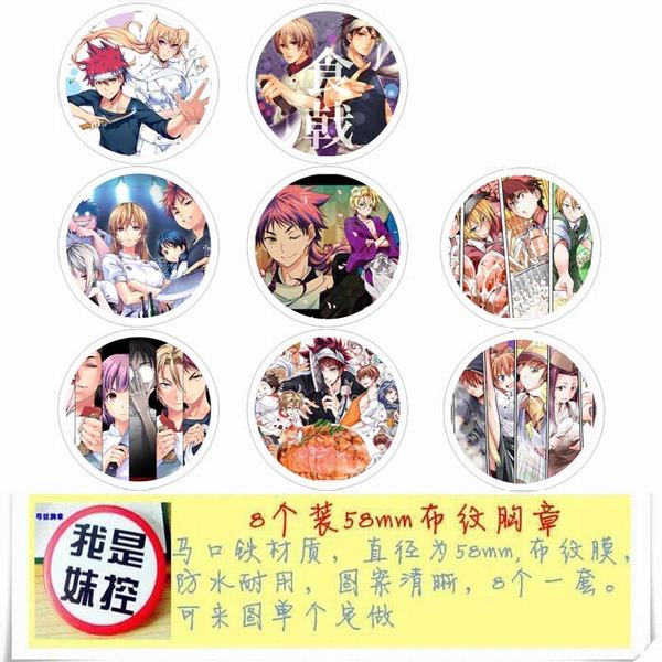 食戟之灵-1 动漫马口铁徽章胸章圆形布纹胸针 8款一套 58MM