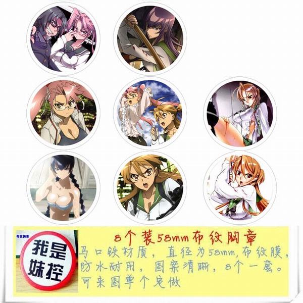 学园默示录 动漫马口铁徽章胸章圆形布纹胸针 8款一套 58MM