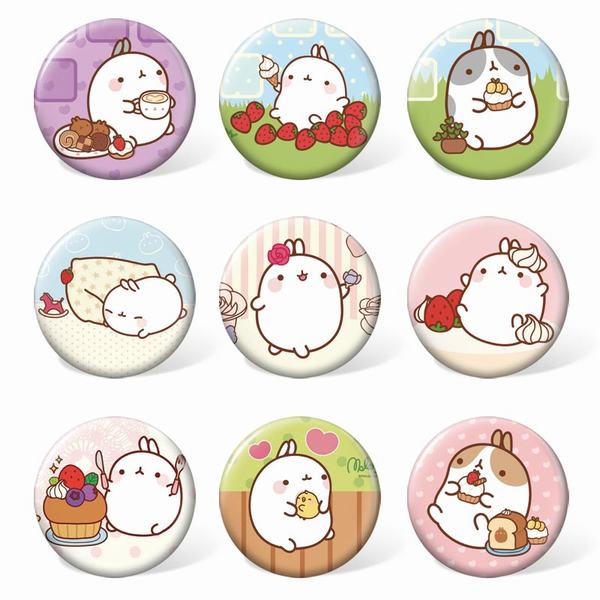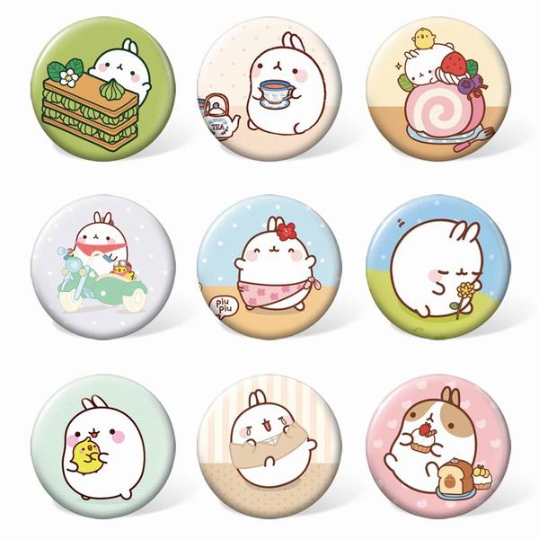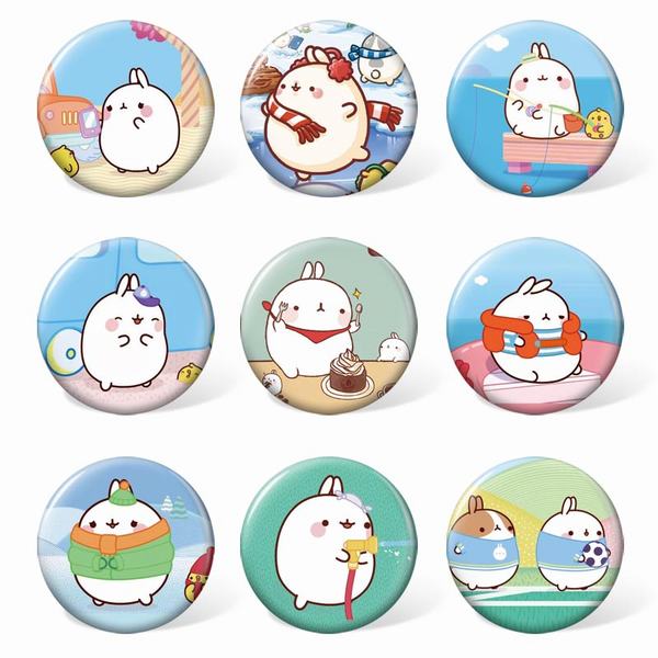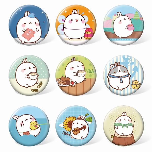 萌浪兔-A款随机9款出圆形布纹胸章胸针徽章58MM