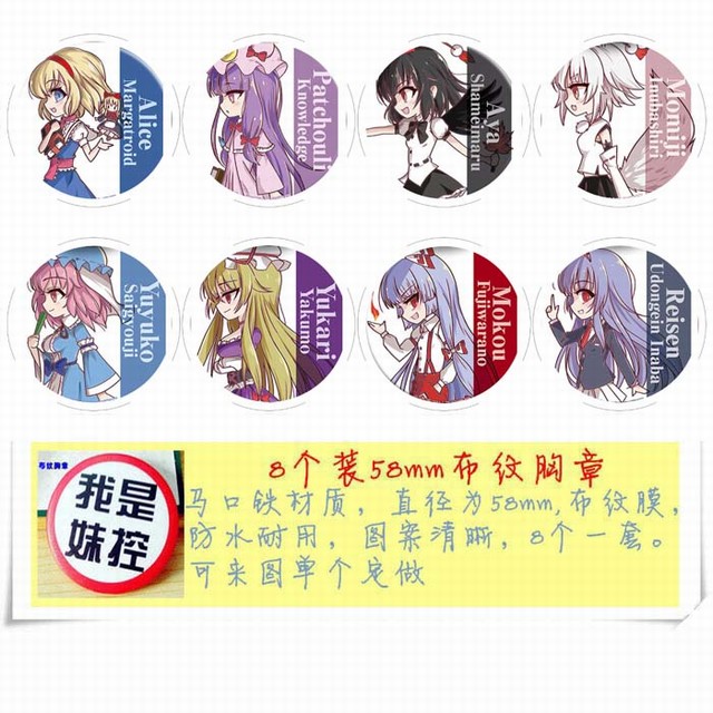 东方 动漫马口铁徽章胸章圆形布纹胸针 8款一套 58MM