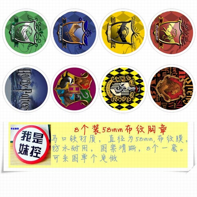 哈利波特 动漫马口铁徽章胸章圆形布纹胸针 8款一套 58MM