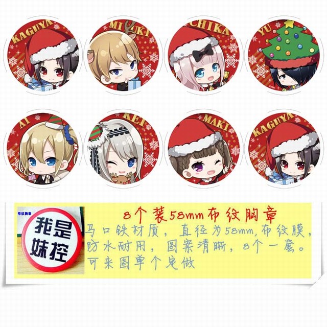 辉夜大小姐想让我告白 动漫马口铁徽章胸章圆形布纹胸针 8款一套 58MM