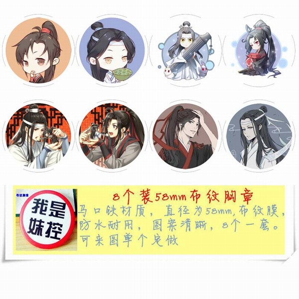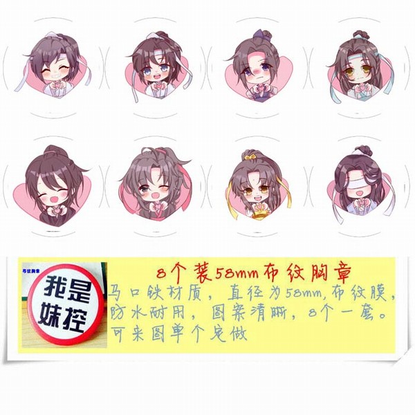 魔道祖师G款 动漫马口铁徽章胸章圆形布纹胸针 8款一套 58MM