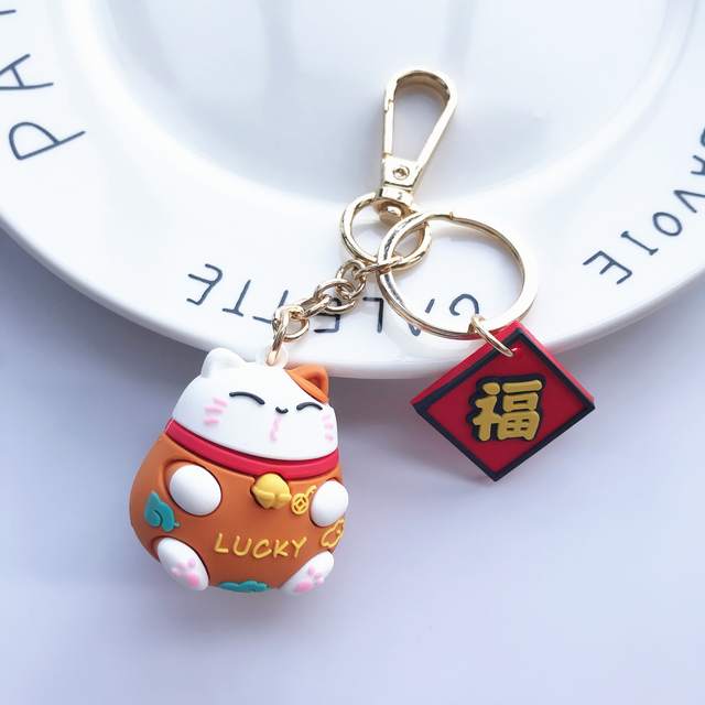 卡通可爱招财猫 橙色 软胶钥匙扣挂件挂饰 5个起批