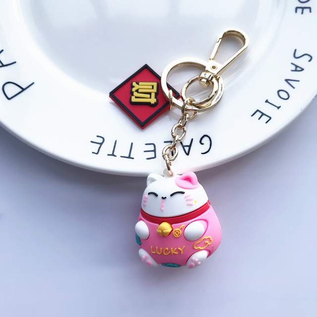 卡通可爱招财猫 粉色 软胶钥匙扣挂件挂饰 5个起批