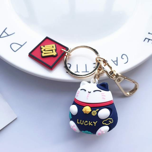 卡通可爱招财猫 深蓝色 软胶钥匙扣挂件挂饰 5个起批