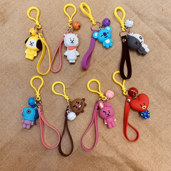 BTS 防弹少年团 BT21 带铃铛 钥匙扣挂件 8个色 10个混色起批