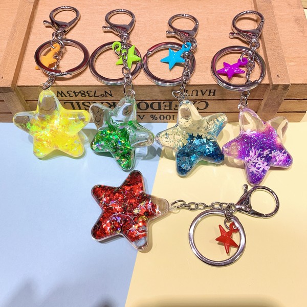 流沙五角星创意钥匙扣挂件 单个出颜色随机