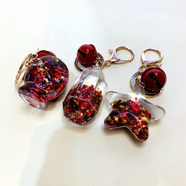 流沙五角星带铃铛 可爱创意卡通钥匙扣挂件 4个款 4个混色起批