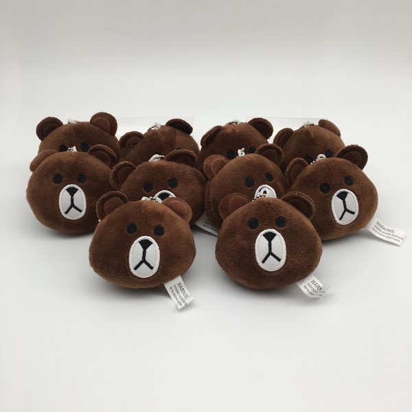 LINE布朗熊头型钥匙挂扣毛绒玩具卡通公仔背包包包挂件钥匙扣 8CM 一套10个 200G