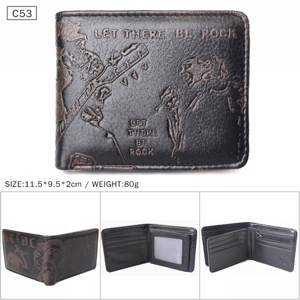 ACDC乐队 黑色C53 对折压纹短款皮钱包 11.5X9.5X2CM 80G
