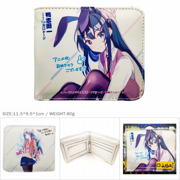 HK-218-青春猪头少年不会梦到兔女郎学姐 短款彩图二折钱包11.5X9.5X1CM 80G