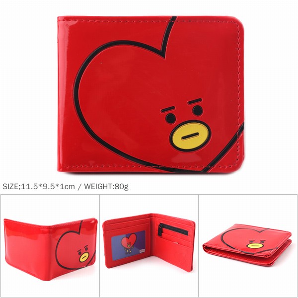 BTS 防弹少年团 BT21 爱心款漆皮全彩短款印花二折钱包 11.5X9.5X1CM 80G