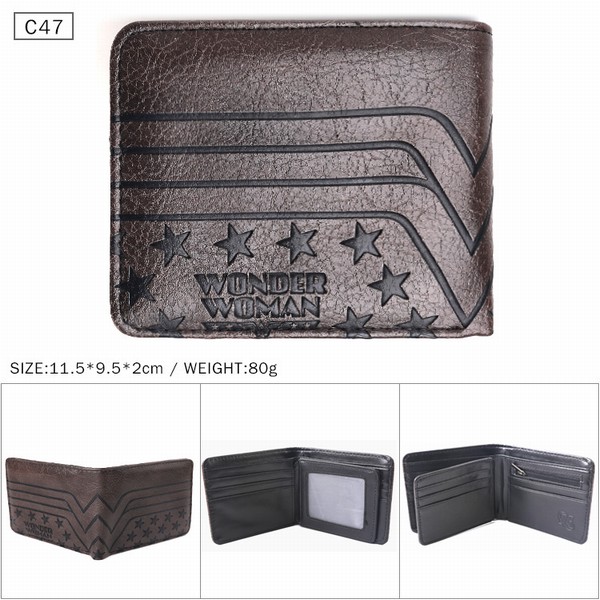 神奇女侠 黑色C47 对折压纹短款皮钱包 11.5X9.5X2CM 80G
