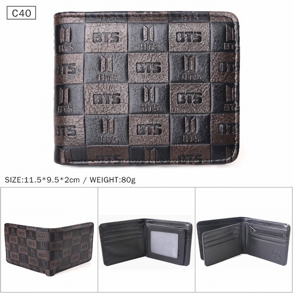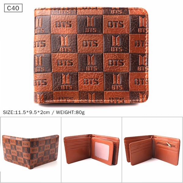 BTS 防弹少年团 棕色C40 对折压纹短款皮钱包 11.5X9.5X2CM 80G