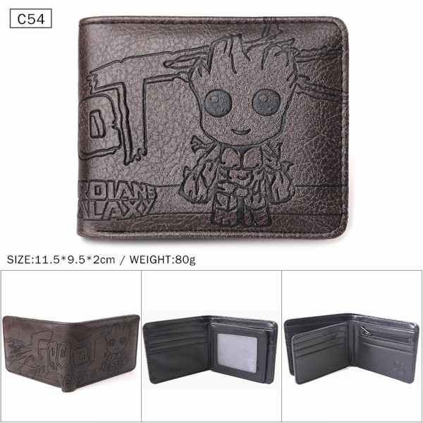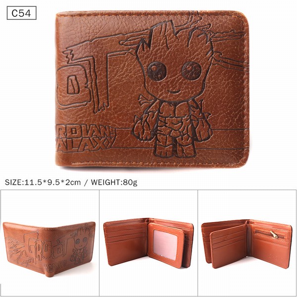 银河护卫队 树人格鲁特 棕色C54 对折压纹短款皮钱包 11.5X9.5X2CM 80G