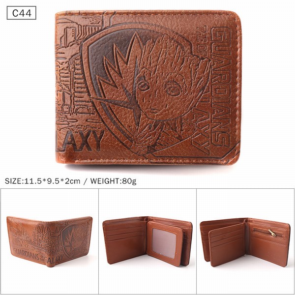 银河护卫队 树人格鲁特 棕色C44 对折压纹短款皮钱包 11.5X9.5X2CM 80G