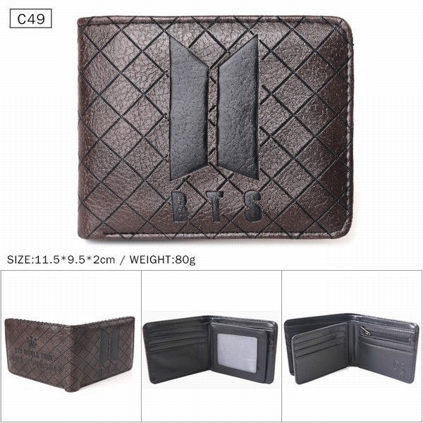 BTS 防弹少年团 棕色C49 对折压纹短款皮钱包 11.5X9.5X2CM 80G