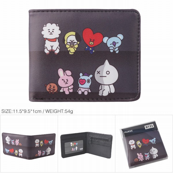 BTS 防弹少年团 BT21黑色款卡通全彩印花短款钱包 11X9X1CM 54G