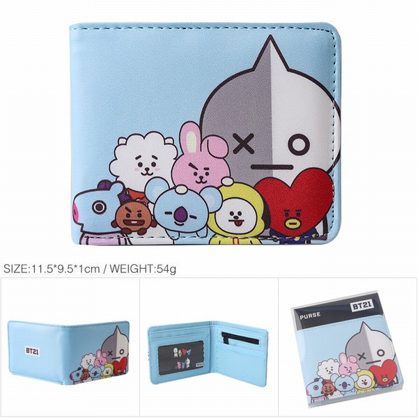 BTS 防弹少年团 BT21蓝色 款卡通全彩印花短款钱包 11X9X1CM 54G