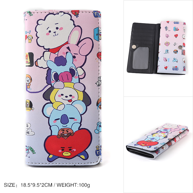 BTS 防弹少年团 BT21集合款 全彩按扣PU长款钱包