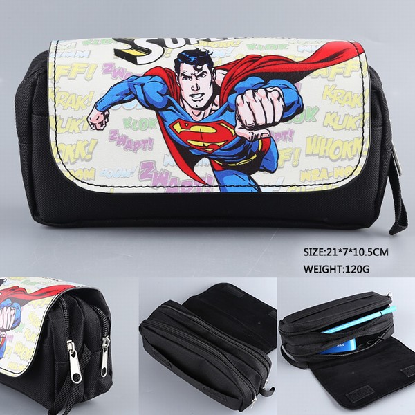 超人PU尼龙多功能双层拉链翻盖钱包笔袋