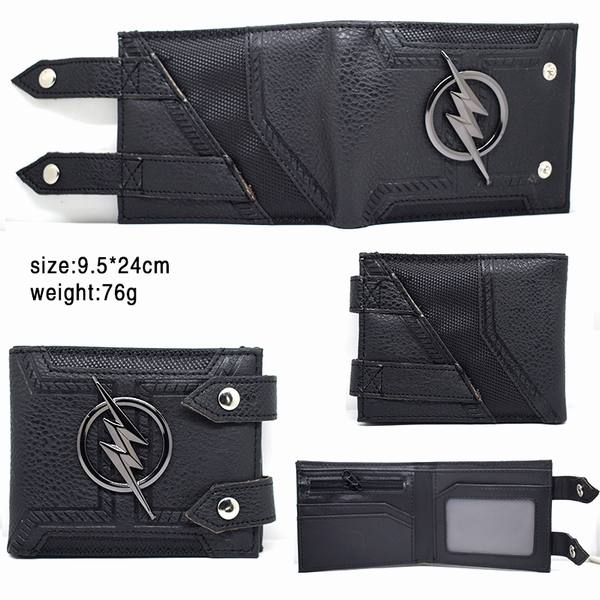 闪电侠金属牌三折按钮钱包