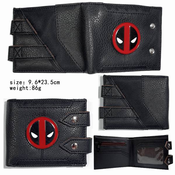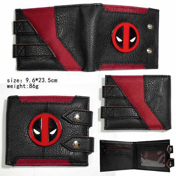 死侍PU铁牌红色三折按钮钱包
