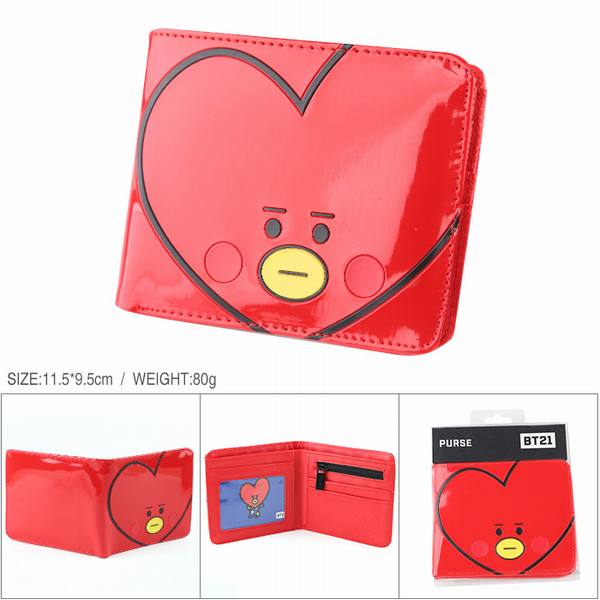 BTS-防弹少年团 BT21 爱心款 漆皮全彩短款印花二折钱包 11.5X9.5CM 80G