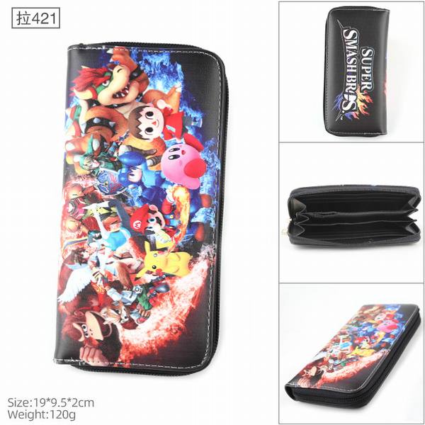 任天堂 拉421 全彩PU斜纹二折拉链长款钱包