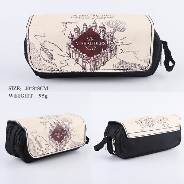 哈利波物标志PU尼龙多功能双层拉链翻盖钱包笔袋