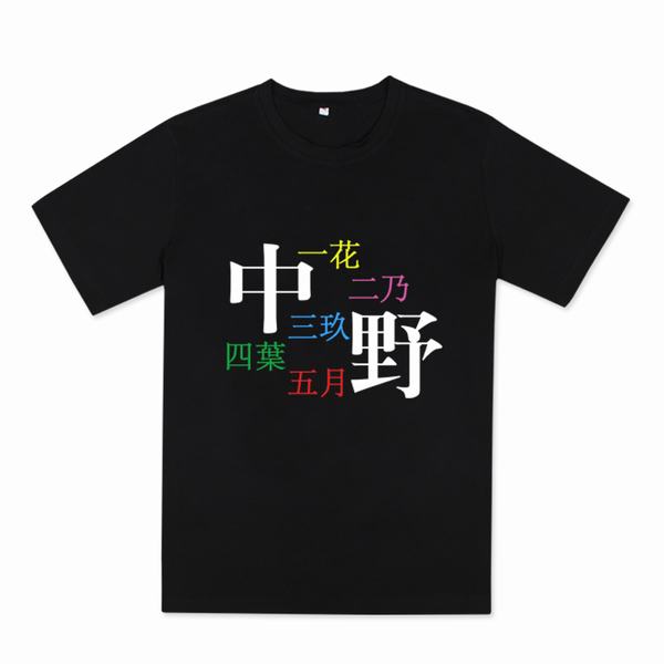五等分的花嫁中野-黑印花短袖T恤M L XL XXL