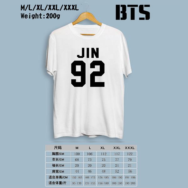 BTS防弹少年团-92JIN白色印花圆领短袖T恤M-L-XL-XXL-XXXL